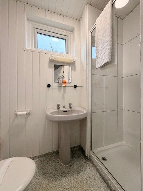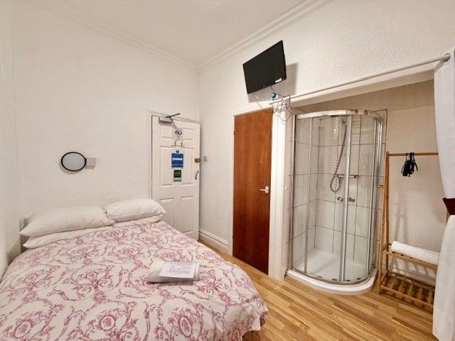 1 x Double Bedroom with shower cubicle in bedroom area – En-Suite with toilet and sink.