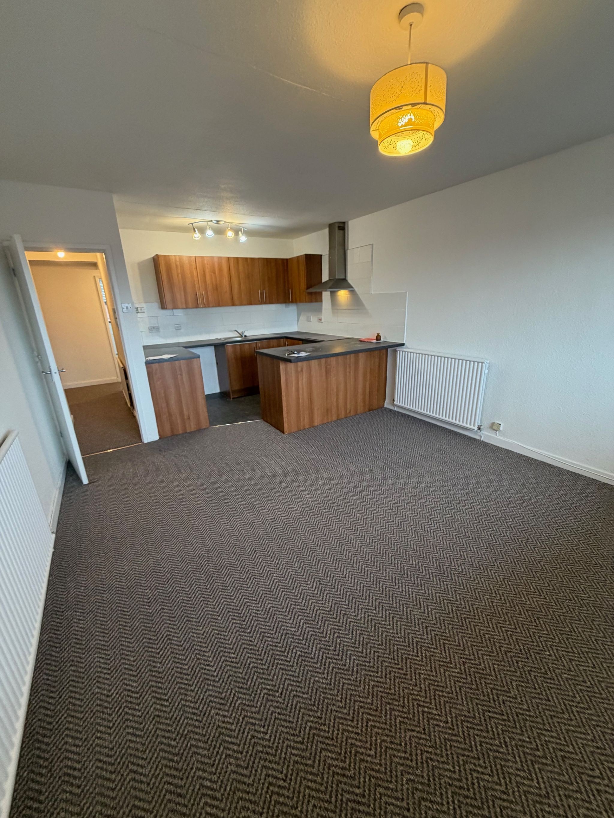 The apartment door opens into a hallway leading through to the large Kitchen/Living Area & allows access to the rear of the property