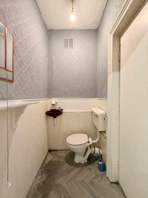 EXTERIOR; Forecourt to front of property for trading or parking. Paved yard to rear of property with small Brick Built Outhouse with new roof.